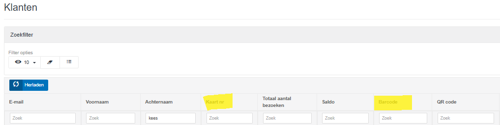 8. Vul bij klantenkaart, de qr-code in van de nieuwe pas, er zal dan 1 resultaat overblijven.