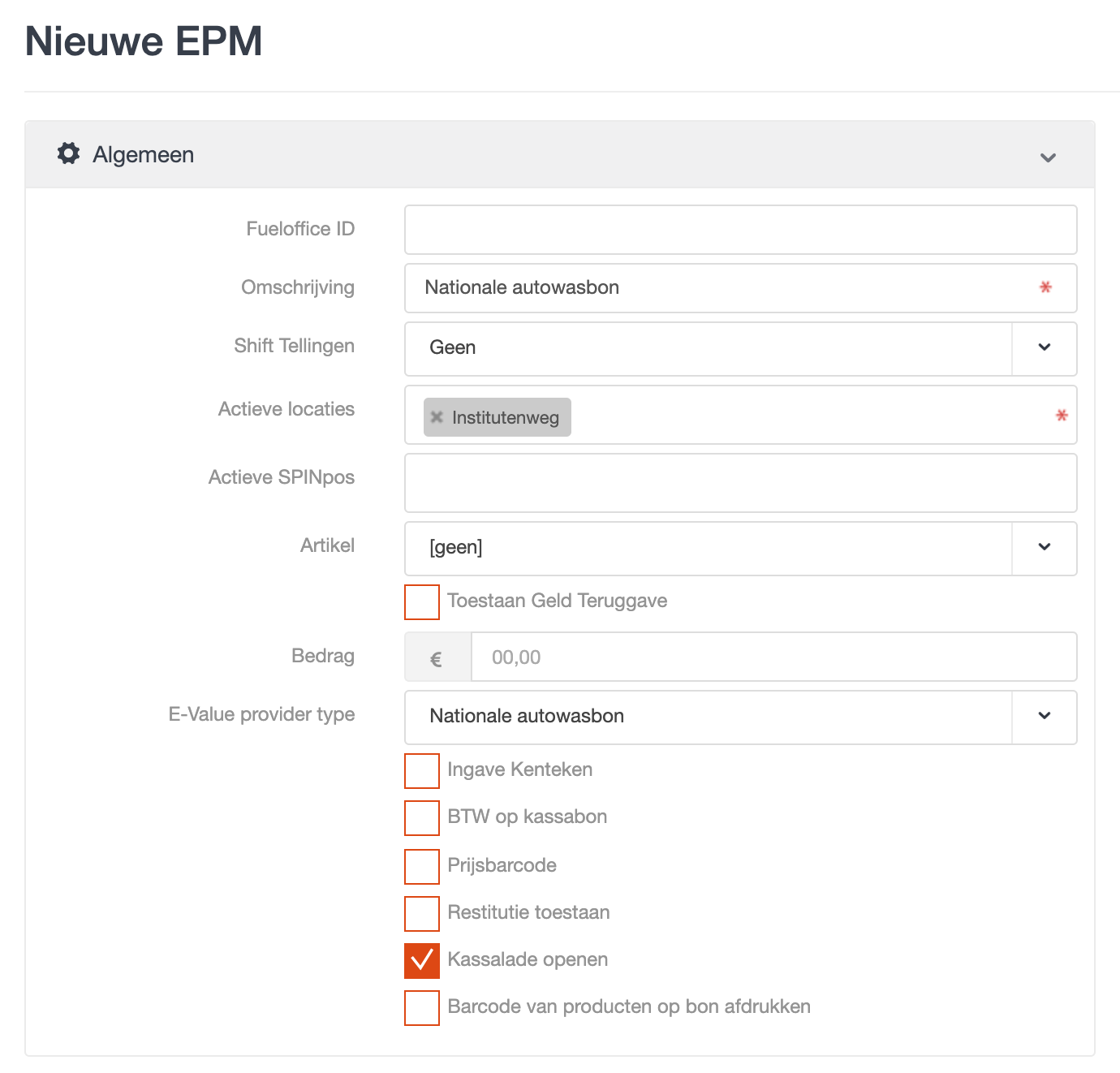 Er kan 1 locatie per Nationale autowasbon EPM actief zijn, heb je meerdere locaties (en dus configuraties) dan dien je voor elke locatie een aparte Nationale autowasbon EPM aan te maken.